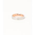 指輪 リング 「サージカルステンレス316L」金属アレルギー対応4ミリ平打ちダイヤモンドセットアップリング 裏面ピンクゴールドプレーティング レディー