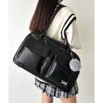 ボストンバッグ Lee/リー 3ポケット PUボストンバッグ/ボンボンチャーム/スクールバッグ/スクバ/ロゴ刺繍 レディース