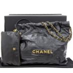シャネル CHANEL シャネル22 スモール チェーンショルダーバッグ シャイニーカーフ ブラック 黒 AS3260 本物保証 箱・布袋付 超美品