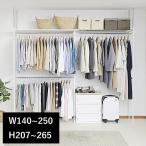 ハンガーラック 突っ張り 奥行45cm 幅140−250cm 頑丈 2段 ウォークイン クローゼット つっぱり 棚1段 壁面収納 スリム ホワイト シルバー