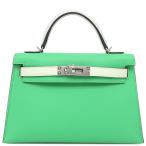 エルメス ミニケリー2トリコロール エプソン ヴェールユッカ×ヴェールフィズ×エトゥープ シルバー金具 HERMES 未使用品ハンドバッグ ブランドバッグ 送料無料