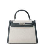 エルメス ハンドバッグ ケリー25 外縫い ヴェールマングローブ/エクリュ/シルバー金具 スイフト/トワルアッシュ K刻印 2wayショルダー