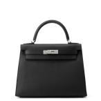 エルメス ハンドバッグ ケリー28 外縫い ブラック/シルバー金具 エプソン W刻印 2wayショルダー 黒