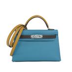 【未使用品】HERMES ミニ ケリー2 19 トリコロール ハンドバッグ ショルダーバッグ ヴォーエプソン ニューブルージーン エコルセ セサミ W刻 5s54529h【中古】