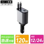 カーチャージャー 120W 車 USBポート 増設 急速充電 シガーソケット iPhone android コンパクト 4口 変換 小型 スマホ 充電 車載 4ポート 12V 24V