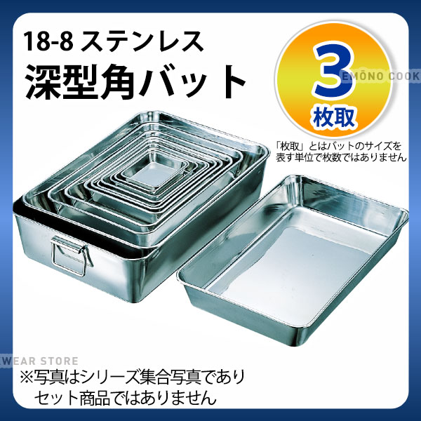 ステンレスバット 3枚取 _ 18-8 深型角バット 3枚取_業務用 _AA0425