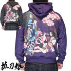 抜刀娘 バットウムスメ 絡繰魂 和柄 パーカー メンズ 美麗 妃那 凛 穂乃花 三人娘 結愛 241871 送料無料