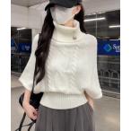 ニット セーター バットウイングケーブルニット ハイネックデザイン レディース