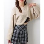 ニット セーター クルーネック バットウィングスリーブ クロスニット クロップ丈 トップス セーター レディース