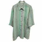 ジーマプロ JI-MA PRO 薄手 シャツ バティック柄 ペイズリー ストライプ 半袖 ポリ100% L グリーン 緑×サーモンピンク×黄×紫 メンズ