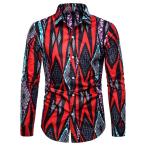 【並行輸入品】アフリカのプリントシャツ男性バティックワックスコットンドレスシャツメンズ長袖伝統的なアフリカ服 CX21616 Asian XL