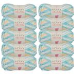 アクリル毛糸 10玉セット 100g 250m 編み物用(ターコイズイエローバティック)