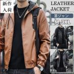ライダースジャケット メンズ 革ジャン レザージャケット 皮ジャン フード付き フライトジャケット バイク 防風 ブルゾン B系 秋冬 バイカー