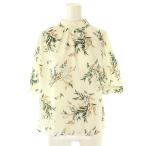 バナナリパブリック BANANA REPUBLIC 総柄ハイネックブラウス 半袖 プルオーバー XS クリーム色 緑 茶 /NR ■OS レディース