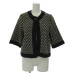 バナナリパブリック BANANA REPUBLIC カーディガン M 黒 ブラック 白 ホワイト ノーカラー 七分袖 /GG ■GY59 レディース