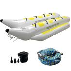 【1日ポイント+5倍】 【全国どこでも送料無料】 バナナボート 8人乗り 3点セット ロープ+電動ポンプ付 2列 ウォータースレッド ホワイト トーイングチューブ