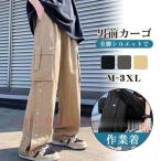 ワイドパンツ メンズ カーゴパンツ ボタン付 太め ゆったり 長ズボン ロング丈 大きいサイズ 夏用 ミリタリーパンツ 春 キャンプ アウトドア