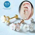 11/11まで50%OFF 両耳セットバーベル 0.8mm 花 フラワー パール 金属アレ対応 ステンレス 軟骨 ヘリックス トラガス 耳用 urk