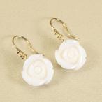 白珊瑚ピアス フック ブラ 薔薇 花 K18 イエローゴールド 無染色 SANSUI