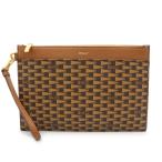 (未使用 展示品)バリー BALLY PNT ZIP ENVELOPE クラッチ セカンドバッグ PVC レザー マルチデセルト ブラウン ゴールド金具 6305028