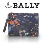【未使用 超美品】 バリー BALLY ハンドストラップ付き セカンドバッグ クラッチ ポーチ マルチケース 鞄 ロゴ柄 ナイロン レザー ネイビー