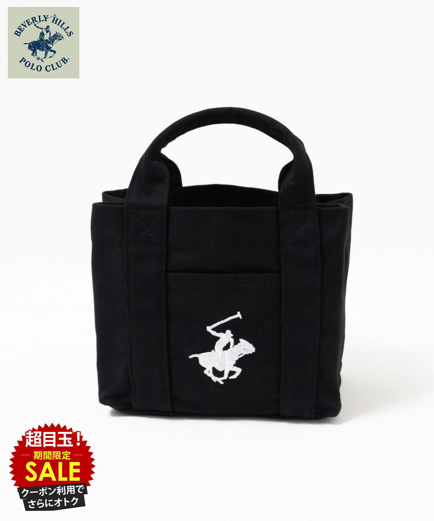 [特別価格★P5倍・まとめ買いクーポン]ビバリーヒルズポロクラブ BEVERLY HILLS POLO CLUB トートバッグ 綿100% コットン キャンバス ミニ 小さめ 仕切り ロゴ 刺繍 黒 白 鞄 バッグ かばん