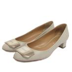 バリー BALLY パンプス プレート チャンキーヒール レザー ライトグレー 35.5 レディース
