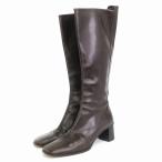 バリー BALLY ロングブーツ スクエアトゥ レザー サイドジップ 茶 ブラウン 36.5 21.5cm位 靴 ■GY14 レディース
