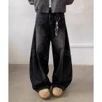 ジーンズ 「cussil/クシル」「12oz」 ルーズシルエットフリンジサイドジップデザインワイドフレア/バルーンデニムパンツ メンズ レディース