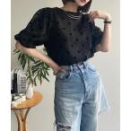 ブラウス シャツ ドットバルーンスリーブブラウス / シアーブラウス / 半袖 レディース