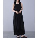 ワンピース リブ×ナイロンタフタ バルーンワンピース