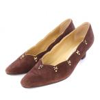 バレンシアガ BALENCIAGA パンプス ラウンドトゥ ポインテッドトゥ チャンキーヒール ローヒール フラワーカット スエード 装飾 36 茶