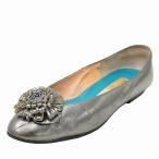 バレンシアガ BALENCIAGA 23.5cm フラワーモチーフ レザー フラットシューズ 36 1/2 SLIVER シルバー レディース