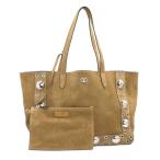 ヴァレンティノ ネルコート スエード ミディアム トート スエード ハバナ ベージュ ボールスタッズ リベット付きトリム 中古 送料無料