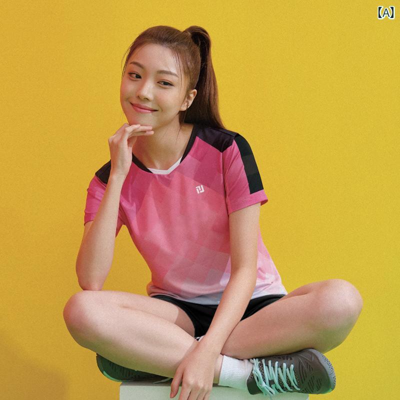 バドミントン ウェア スポーツ ファッション おしゃれ メンズ レディース 春夏 ユニフォーム 速乾 半袖 バレーボール トップス ピンク ブラック ブルー