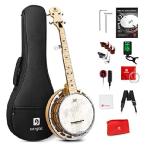 【並行輸入品】 Mulucky 5弦バンジョー ミニ 28インチ トラベル バンジョー レモヘッド レゾネーター付き ギア付き 第5チューナー 初心者キット