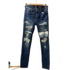 AMIRI◆バンダナアートパッチダメージスキニーパンツ/33/コットン/IDG