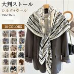 春夏 レディース ストール 大人 スカーフ ペイズリ柄 モノトーン バイカ バンダナ柄 上質 高級 大判ストール 大判スカーフ エレガント ウール シルクスカーフ