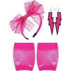 【並行輸入品】Blulu 80のレースヘッドバンドネオンイヤリングFingerless Fishnet Gloves Set for 80のパーティー