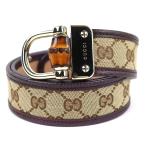 極美品△GUCCI グッチ 214351 バンブー レザー使い GGキャンバス ベルト ベージュ ブラウン 85 34 イタリア製 メンズ レディース