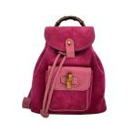 GUCCI◆ミニリュック/バンブーハンドル/リュック/スウェード/ピンク/無地//