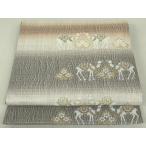 平和屋着物▽六通柄袋帯 バンブー織 スリーシーズン 春夏秋 駱駝 草花文 正絹 逸品 DAAT0395ob