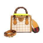 【7%OFFクーポン&500円OFFクーポン15日0時〜18日23:59迄】【中古】 美品 グッチ ハンドバッグ ショルダーバッグ バンブー ダブルG 千鳥格子 ゴールド金具 ダイアナ スモール ハウンドトゥース ラフィアエフェクト ライトブラウン&ホワイト 702732 520981 レディース GUCCI