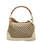 グッチ GGキャンバス バンブー ハンドバッグ ショルダーバッグ 2WAY 282315 ブラウン アイボリー キャンバス レザー GUCCI 【中古】