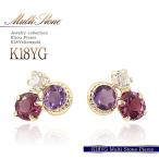 ピアス 18金 レディース 18k ゴールド ビジュー 小ぶり K18 アメジスト ロードライトガーネット ホワイトトパーズ プレゼント 彼女 紫 バースデープレゼント