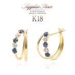9月誕生石 ピアス 18金 フープ サファイア レディース 18K イエローゴールド K18 2連 小さめ プレゼント 記念日 青 ブルー おしゃれ 彼女 バースデープレゼント
