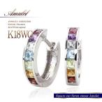 ピアス 18金 フープ 18k フープピアス レディース K18 アミュレット リング ホワイトゴールド プレゼント 誕生日 記念日 輪っか カラフル バースデープレゼント