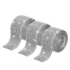 uxcell 3ロール1\"3ヤードのセルフアドヒーシブ水晶ラインストーンダイヤモンドリボン ウェディングケーキ バースデーデコレーションシルバー