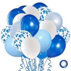 Lausatek バルーン 誕生日 風船セット 青 白 HAPPY BIRTHDAY バースデー 紙吹雪風船 きらきら