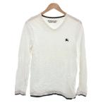 バーバリーブラックレーベル BURBERRY BLACK LABEL カットソー Tシャツ ロンT ロゴ刺繍 Vネック 長袖 2 白 ホワイト /JS メンズ